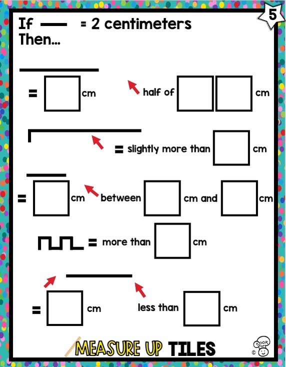2 - 5 | CENTIMETER MEASURE TILES dealing with metric linear measurement by estimating and then measuring to the nearest centimeter Challenge Level: | $10.00 Max: Min: 1 Step: 1 Add to cart | |
