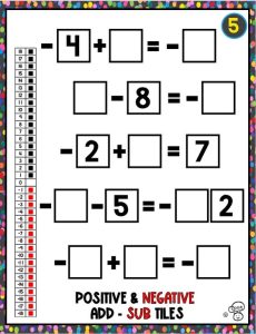 4 - 8 | NEGATIVE/POSITIVE INTEGER TILES adding and subtracting of positive and negative whole numbers Challenge Level: | $10.00 Max: Min: 1 Step: 1 Add to cart | |