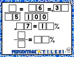 5 - 8 | PERCENTAGE TILES I DIGITAL changing common fractions to decimals and decimals to percents and vice versa Challenge Level: | $10.00 Max: Min: 1 Step: 1 Add to cart | |