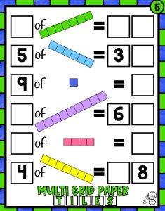 3 - 6 | MULTI GRID PAPER TILES completing multiplication equations using grid paper visualization; basic multiplication facts Challenge Level: | $10.00 Max: Min: 1 Step: 1 Add to cart | |