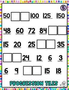 5 - 8 | PROGRESSION TILES sequencing numbers by completing arithmetic and geometric progressions